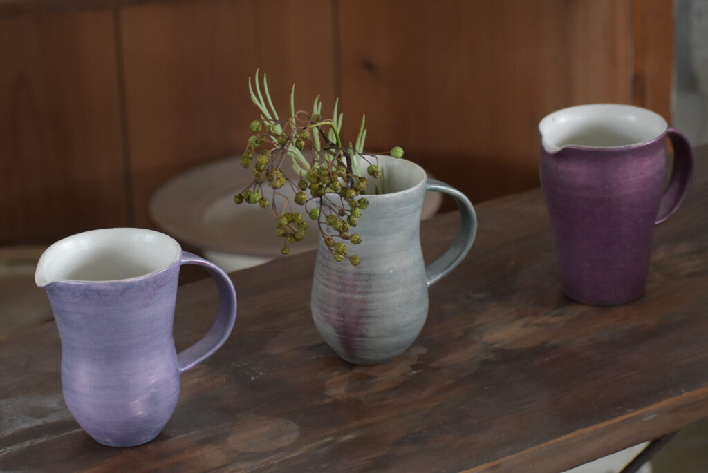 お茶の時間に彩りを添えてくれるピッチャーや花器も