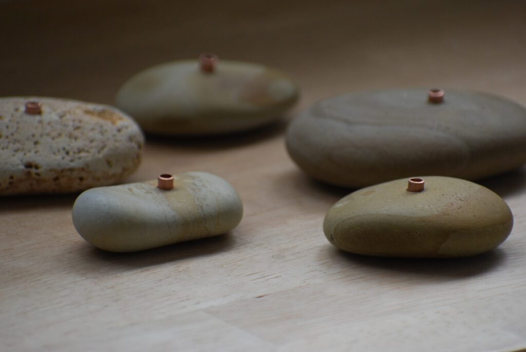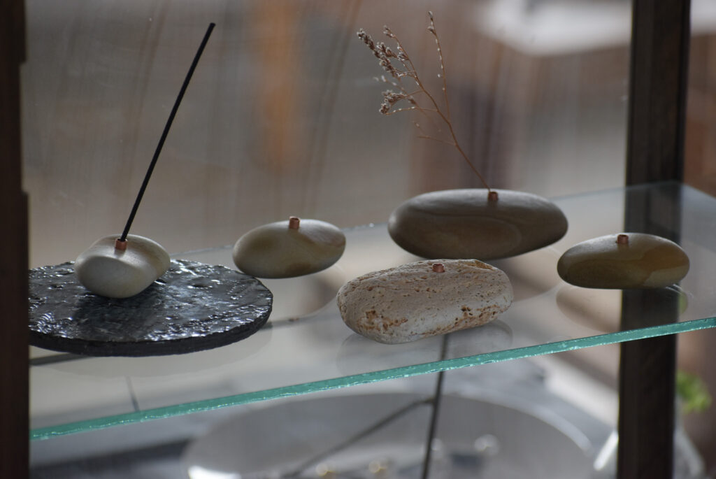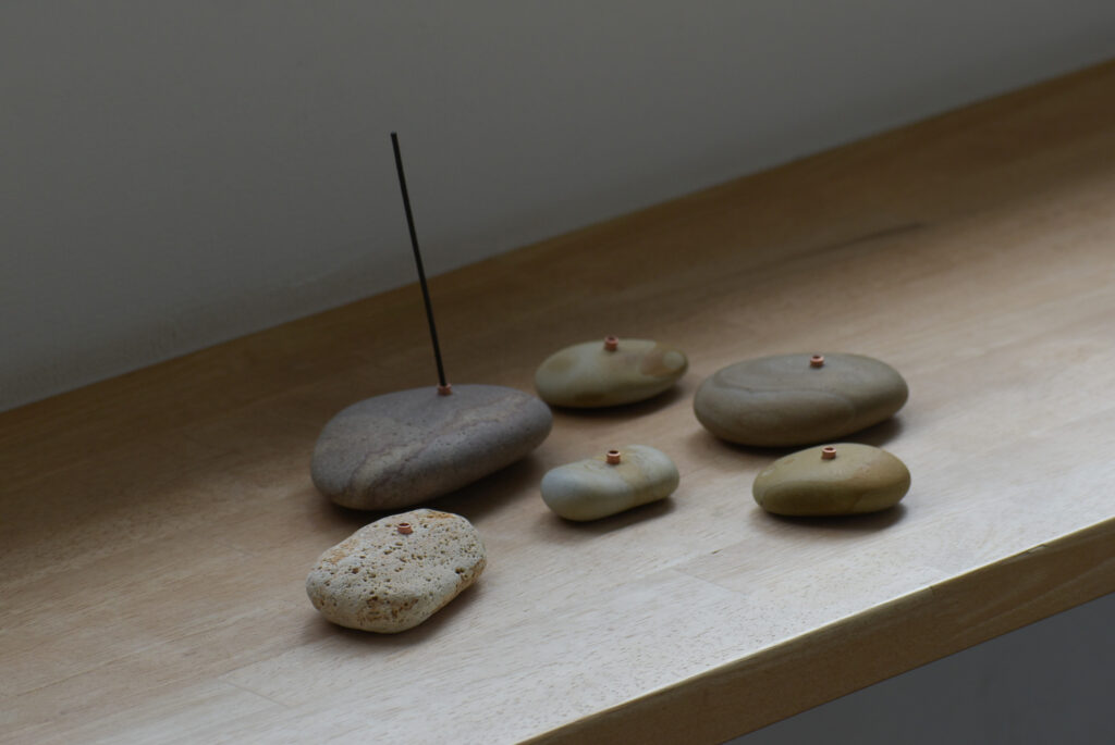 天然の石に銅パイプを固定したシンプルなお香ホルダー。