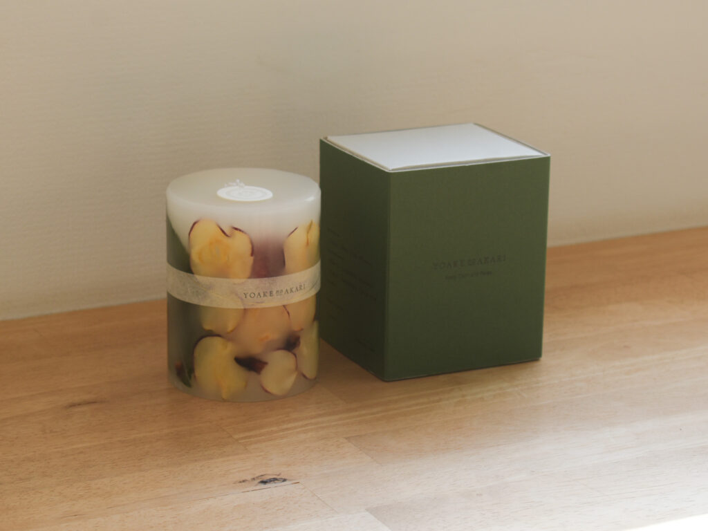 ボタニカルキャンドルは青森のりんごの葉や枝、実が透けて浮かび上がり、