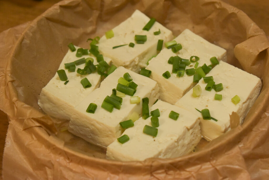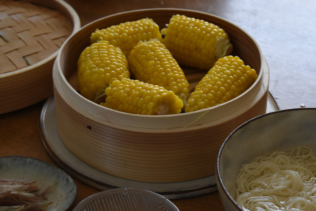 手軽な一品としておすすめなのは、夏場はとうもろこし、寒くなった今は蒸し豆腐、湯豆腐よりも美味しく感じられて個人的にはまっています。