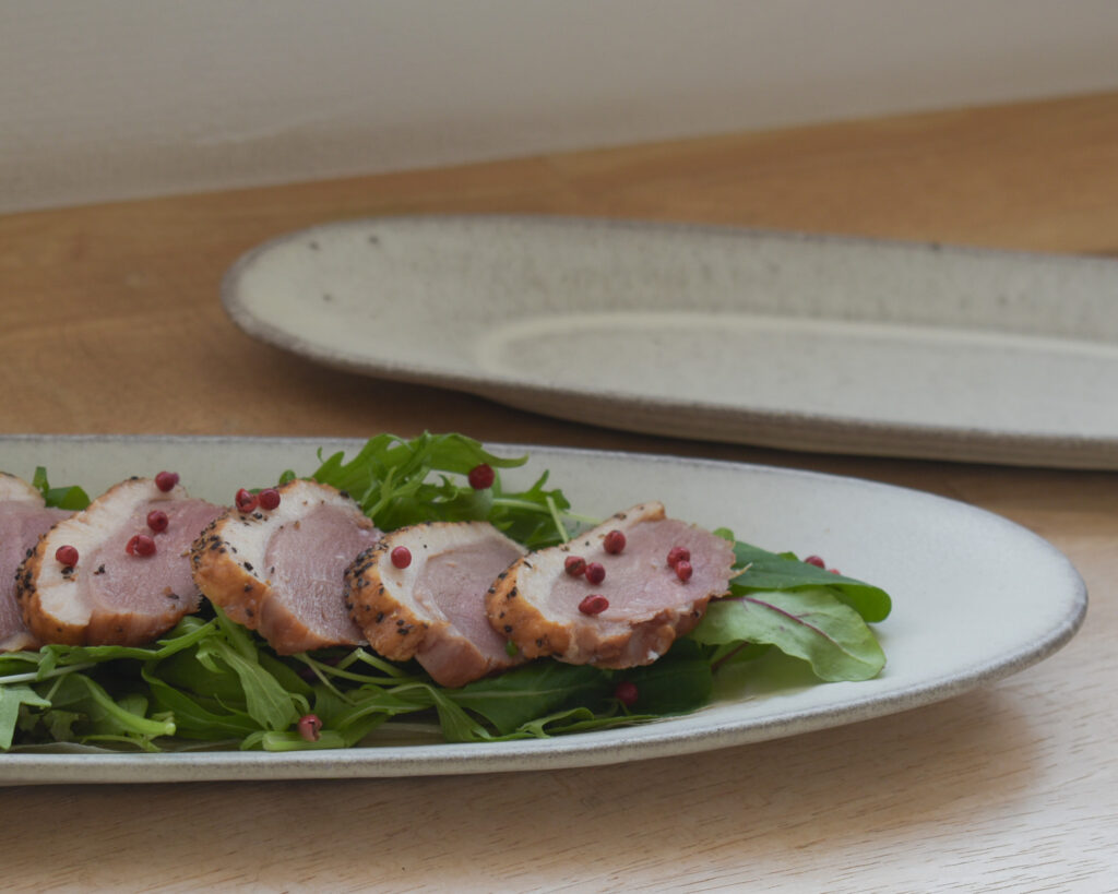 さっと食材を並べるだけでひと皿決まる細長い楕円皿。
