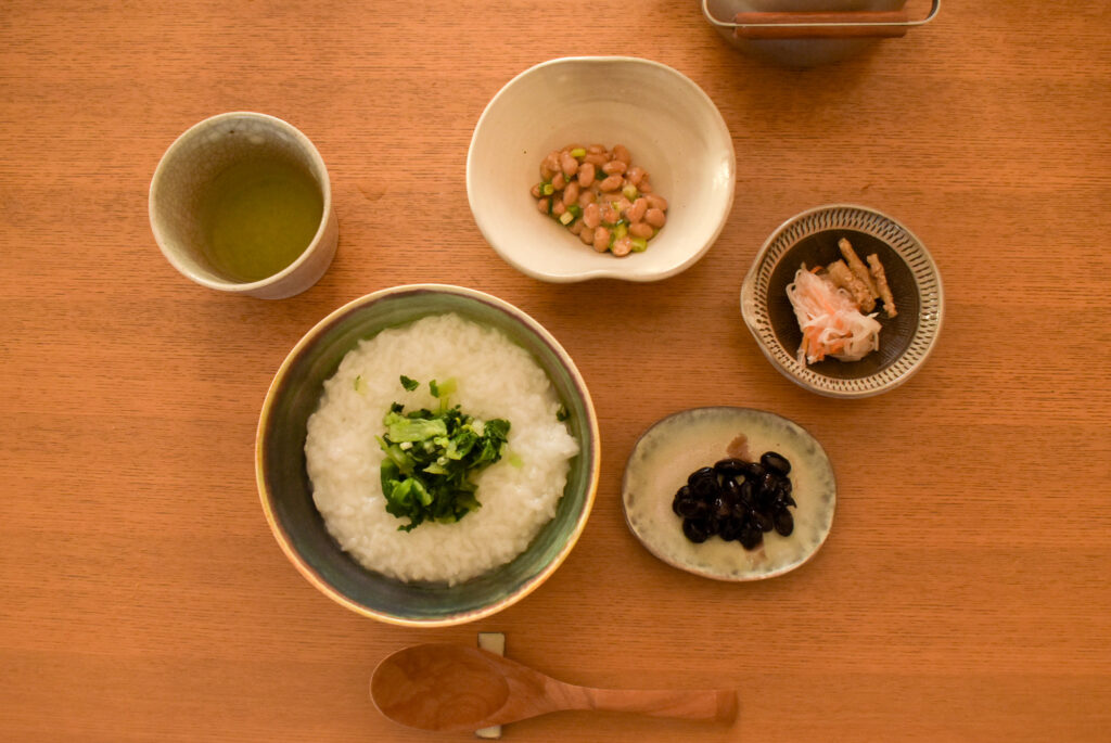いわゆる七草ではありませんが、やさしいお粥のあまみに