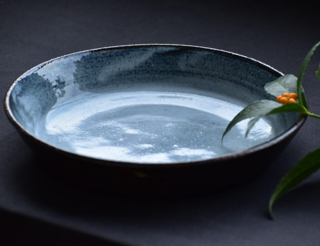 林裕司さんの浅鉢皿。縁が立っていて底は平らな安定感のあるお皿。