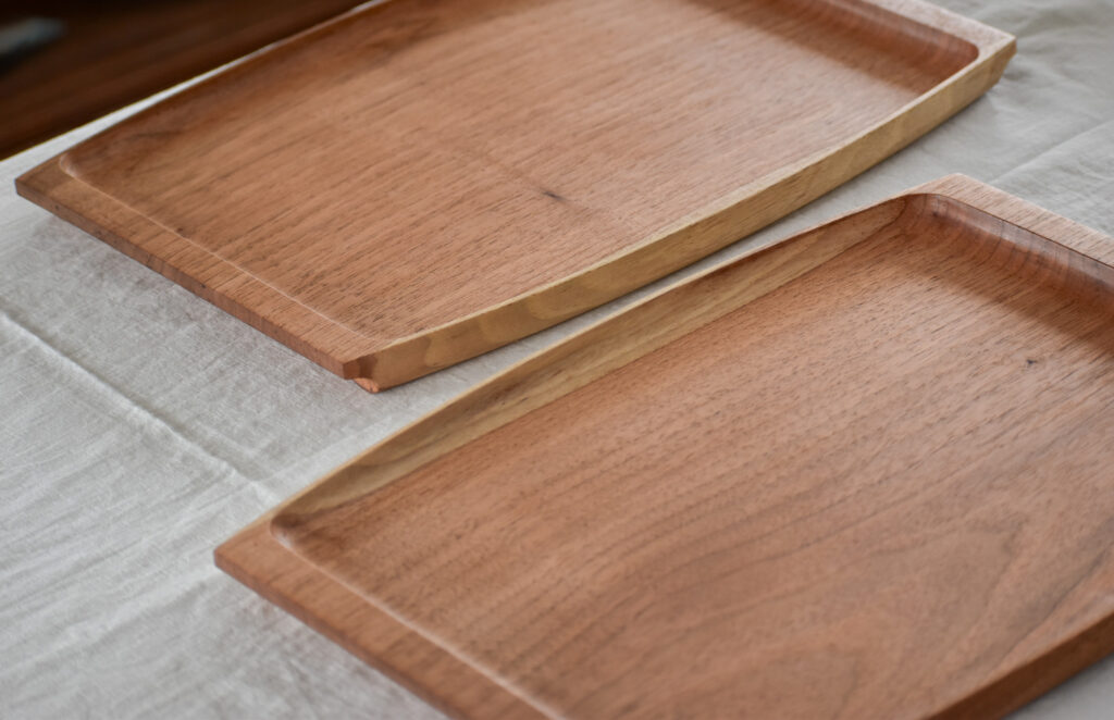 難波行秀さんのくるみの木のトレー。シンプルでゆるやかなカーブのあるトレー、こちらも日常で何度も活躍しています。