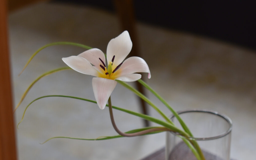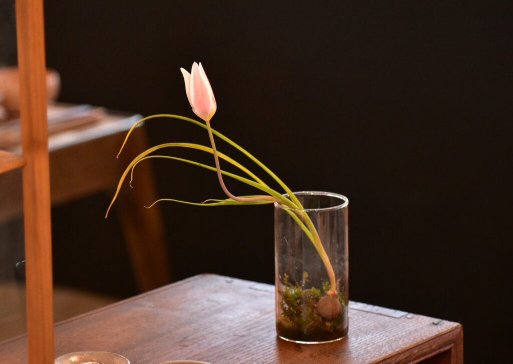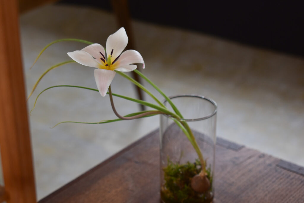 はなのねさんの店先で、まだ緑の蕾のまま苔の上にちょこんと並んだ姿があまりに可愛く一目惚れして連れて帰りました。
