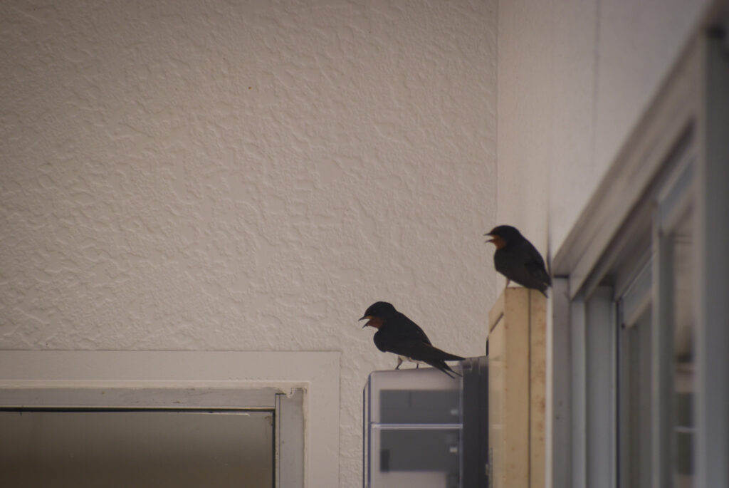 写真はつばめがお店の建物内に昨年の夏に暑さをしのぎに休んでいるところ。