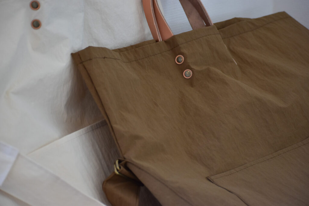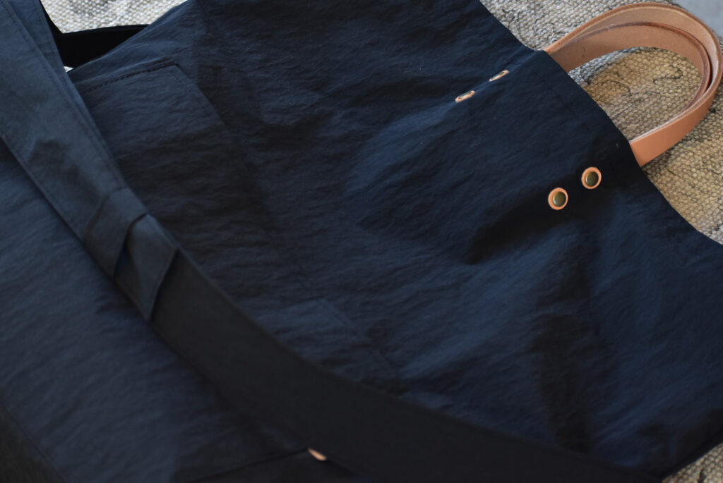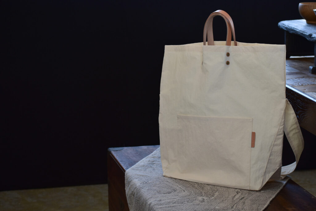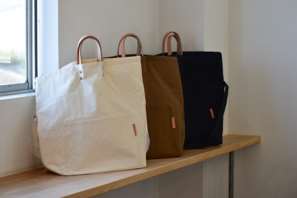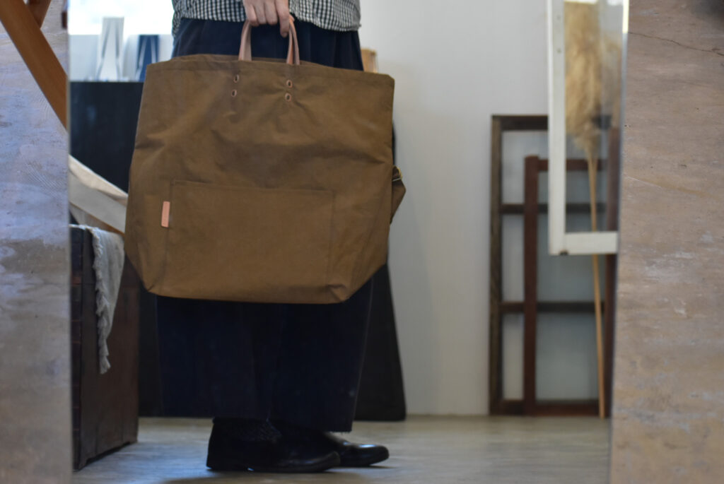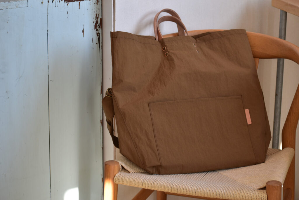 ナイロンに特殊加工を施し、軽くてハリがあり、へたりにくいのが特徴で、乾燥昆布のような風合いと自立性のあるバッグ。本当に驚くほど軽いのに、しっかりとした強度があり、摩擦や破れにも強いので永くお使いいただけます。